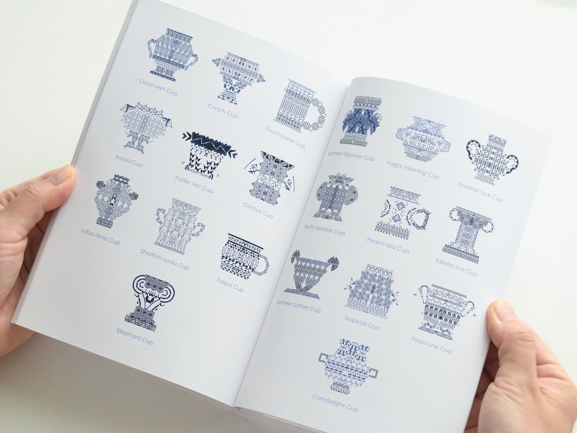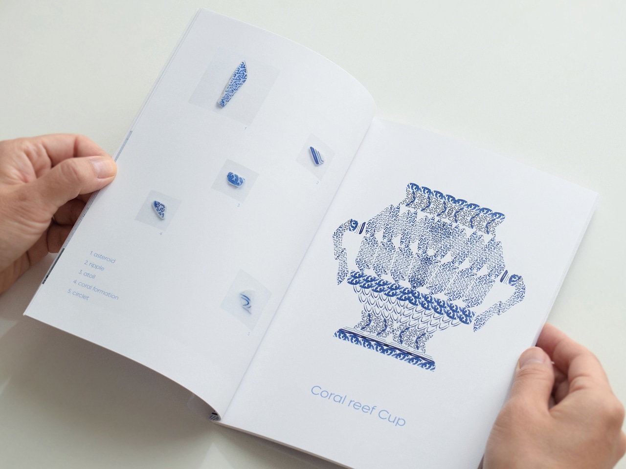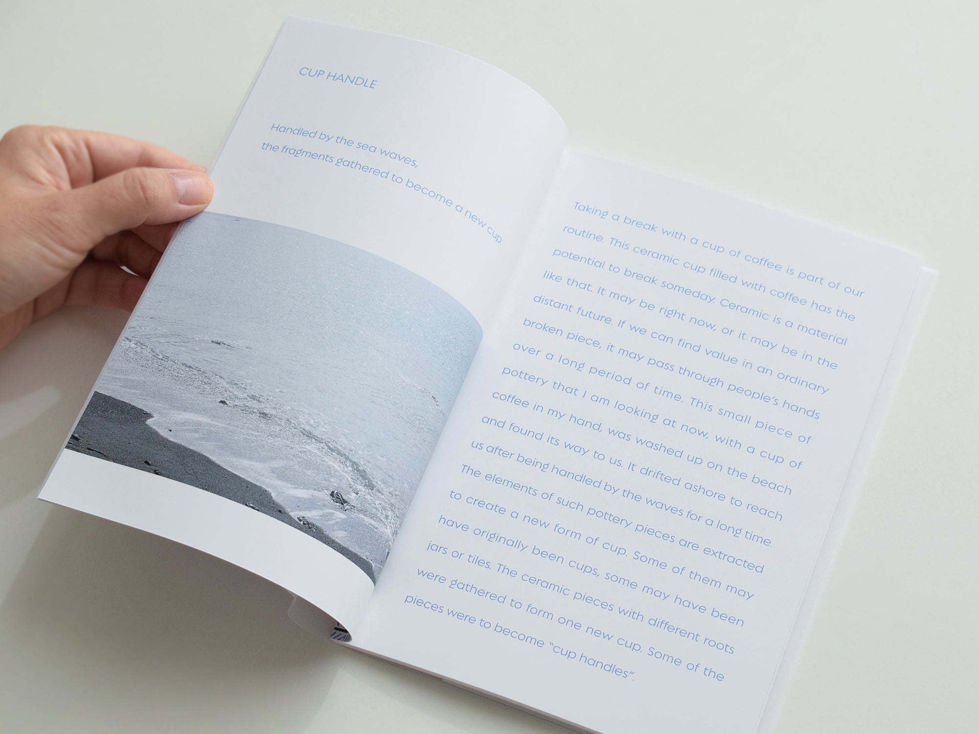 ルーツの違う陶器のカケラがひとつのカップを形成するために、波に操縦されて集まってきました。CUP HANDLEと題して取っ手のある空想のカップをパターンで表現した作品集です。