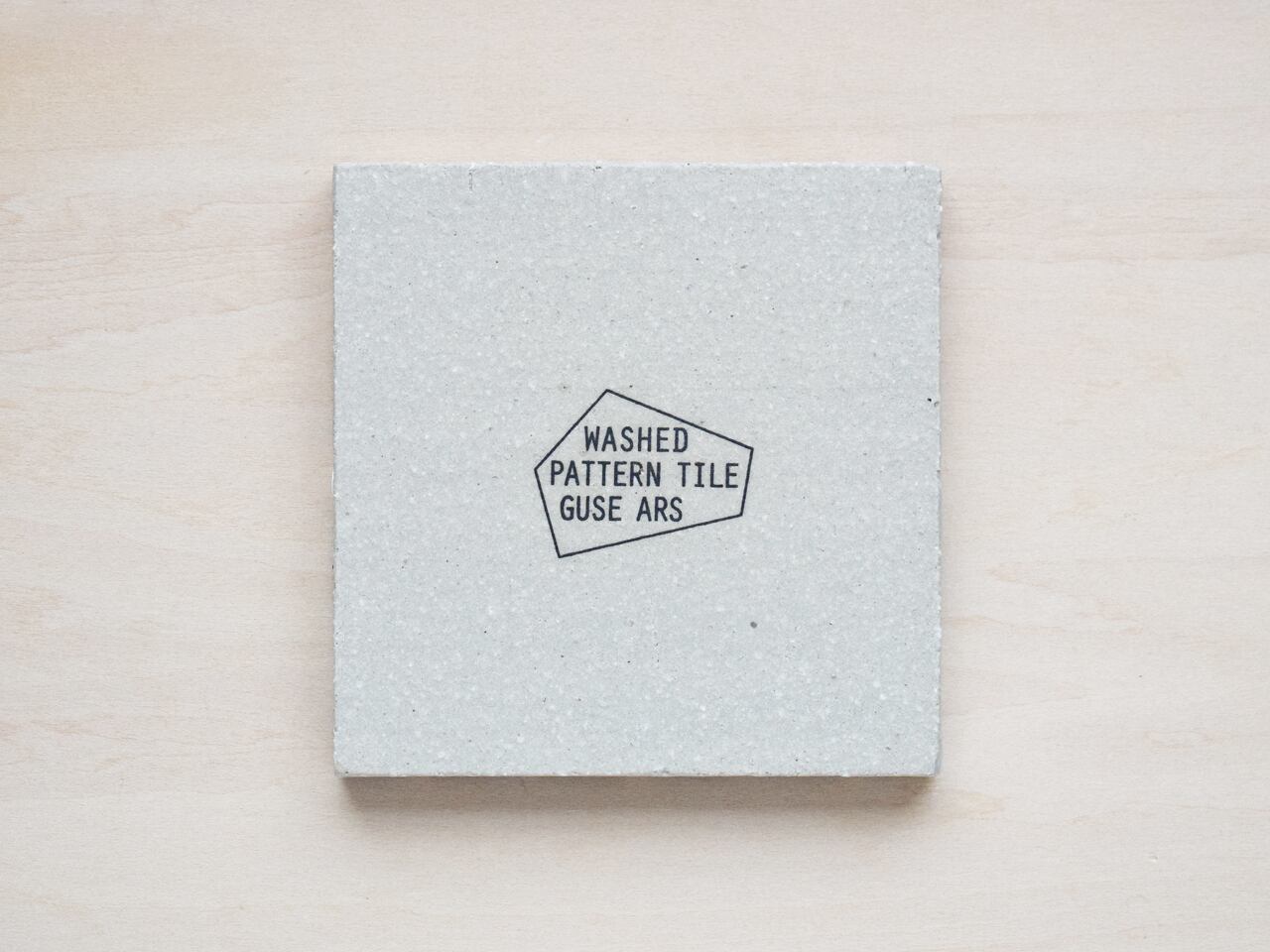海や川を歩くとかつて器やタイルの一部であった陶片が打ち上げられています。漂着した陶片の中には、小さな柄が残されているものもあります。washed patternとは、陶片の柄を抽出し、再構成することで新しい模様を生み出すguse arsのプロジェクトです。この模様をタイルとして生活に戻すことで、遠い未来、再び割れて欠片となり、何処かに流れ着く日が来るかもしれません。これは永遠に続けることができるサイクルです。生命が子孫を残していくように、陶片もまた未来に続く模様の子孫を繋いでいく。このタイルには、陶片が織り成す「時」と「模様」のめくるめく連鎖が封じ込められています。
